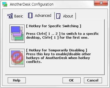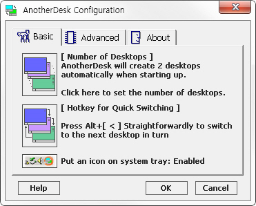 상세정보 데스크톱 생성 기능 최대 8개의 가상 데스크톱을 생성하여 모니터를 보다 넓게 사용할 수 있습니다. 편리한 인터페이스 사용자 정의 단축키를 이용할 수 있으며, 프로그램이 가볍고 안정적입니다. 또한 가상 데스크톱의 생성과 변환이 쉽습니다.