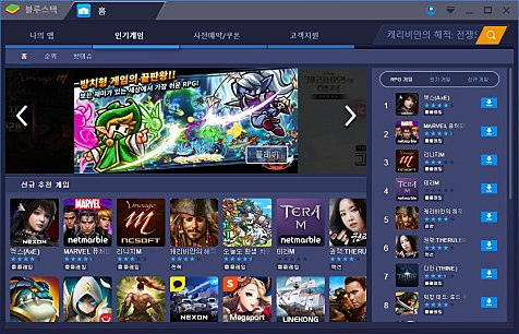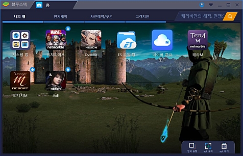 * 블루스택을 통해 PC에서 안드로이드 전용앱들을 보다 쾌적하게 사용할 수 있습니다.