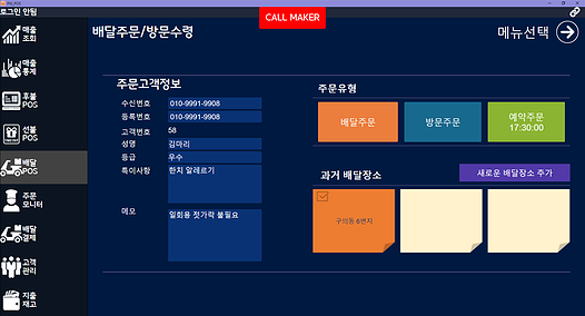 * 배달 포스 : CID기기 연동, 고객 배달주문을 편리하게 관리하는 배달POS