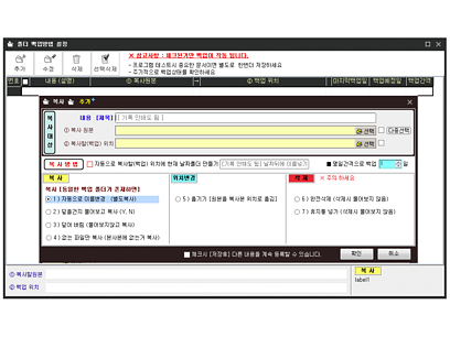 * 환경설정에 따라 다양한 백업 기능을 지원합니다.
