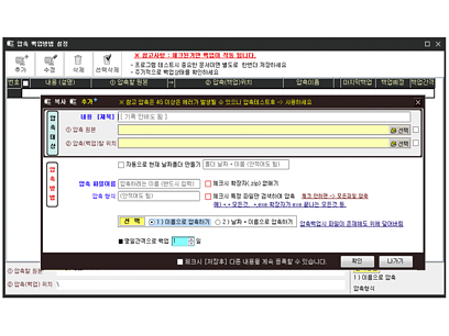 * 백업프로그램을 실행시키면 다른프로그램을 실행시켜 종료시 환경설정에 따라 백업을 수행 합니다.