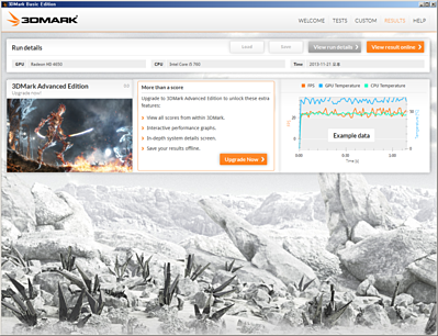 상세정보 광범위한 벤치마크 세계에서 가장 인기있는 벤치마크 프로그램입니다. 아이스 스톰, 클라우드 게이트, 파이어 스트라이크가 포함되어 있습니다. 태블릿부터 게임PC까지 모두 테스트합니다. 윈도우, 안드로이드와 iOS에 걸쳐 점수를 비교합니다. 쉬운 사용방법 기술적 지식 없이도 사용할 수 있습니다. 무료 온라인 계정으로 테스트 결과를 관리할 수 있습니다.