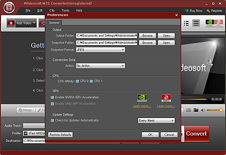 상세정보 다양한 포맷을 지원하는 컨버팅 TS, MTS, M2TS등의 포맷을 MP4, H.264, AVI, MP3, WMV, WMA, FLV, MKV, MPEG-1, MPEG-2, 3GP, 3GPP, VOB, DivX, Mov, RM, RMVB, M4A, AAC, WAV 등의 다양한 포맷으로 변환이 가능합니다. 저장 폴더 지정 선택한 동영상 및 이미지 저장 폴더를 설정할 수 있습니다.