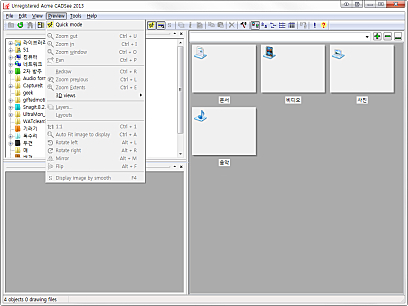 상세정보 캐드 뷰어 캐드 이미지 파일을 볼 수 있습니다. 섬네일 기능 섬네일로 이미지를 볼 수 있습니다. 3D 뷰 3D 뷰 기능을 제공합니다. 인쇄 인쇄가 가능합니다. 지원 포맷 DWG, DFX, BMP, JPEG, GIF, PCX, TGA, TIFF, PNG, PSD, WMF, ICO를 지원합니다. 풀스크린 전체 화면 모드를 지원합니다.