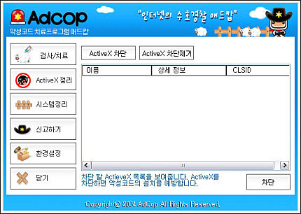 악성코드 검사/치료, ActiveX 사전 차단 등 여러 기능을 제공하는 프로그램입니다.