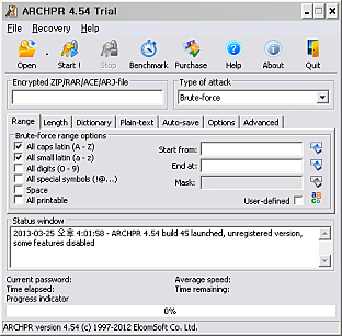 상세정보 간편한 인터페이스로 누구든 쉽게 사용할 수 있습니다. 자동압출풀림 파일 .EXE 파일을 지원합니다. 암호를 찾기 위해 생성되는 여러가지 옵션을 설정할 수 있습니다. 한국어를 제외한 암호로 사용된 다양한 언어 형태를 지원합니다. 특별히 가상메모리가 필요하지 않습니다. 그 외 다수의 기능이 있습니다.