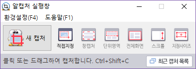 * 캡처한 이미지를 목록에 차곡차곡 쌓아 보여줍니다. 최근 캡처 목록을 통해 이전에 캡처한 이미지 확인은 물론 좀 더 편리하게 알캡처를 이용할 수 있습니다.