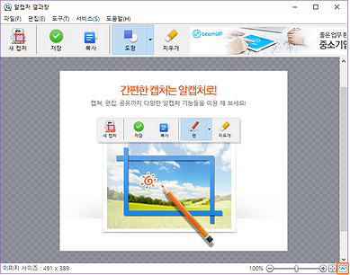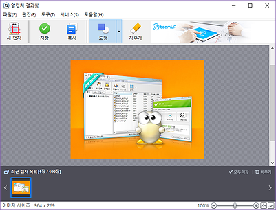 * 알씨꾸미기와 연동하여 크기변경, 자르기, 보정, 필터 및 각종 효과와 글상자, 스티커, 액자 툴을 이용하여 캡처한 이미지를 자유롭게 편집할 수 있습니다.