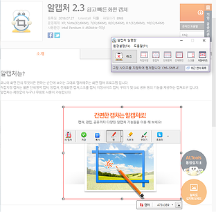 * 사각형/자유형 캡처, 단위영역 캡처, 창캡처, 전체캡처, 스크롤캡처, 지정사이즈 캡처를 지원합니다.