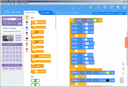 아두이노 프로그램을 블록이나 C언어의 2가지 형태로 작성/편집/업로드까지 하나로 해결할 수 있는 올인원 프로그램이며, 교육사업용 다양한 학습지원 컨텐츠를 제공합니다.