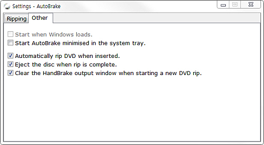 Other 메뉴에서 시스템 트레이에 최소화, Windows 시작시 자동 실행, DVD 삽입 시 자동 립핑 등의 설정을 선택할 수 있습니다.
