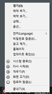 시스템 트레이 메뉴에서도 AutoOff의 기능을 바로 실행할 수 있습니다.
