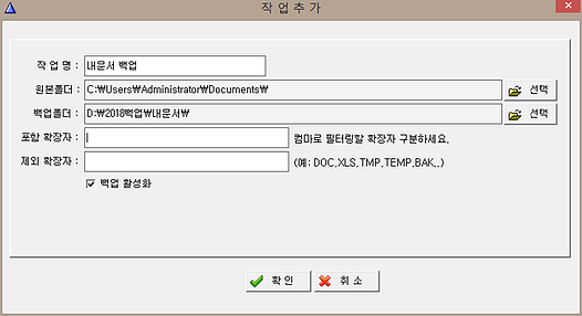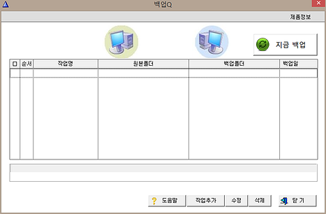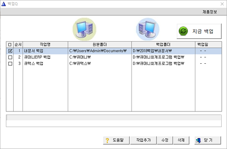 상세정보 * 빠른 백업을 위하여 원본폴더와 백업폴더 비교하여 변경된 파일만 백업합니다. * 백업작업 추가로 다중 백업 지원 * 무료프로그램이지만, 카페(cafe.naver.com/qnote)에서 Q&A 지원합니다. * 특징: 닷넷(.Net Framework),자바 설치가 필요없는 exe 하나의 초소형 프로그램