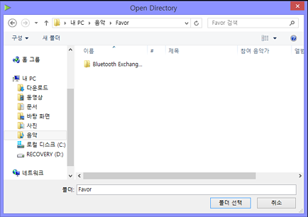 * 폴더를 선택하면 그 폴더 내의 음악 파일을 재생 목록에 추가시킬 수 있습니다.