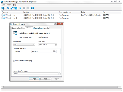 사용자가 컴퓨터를 켜거나, 로그온 하기 전 또는 컴퓨터 종료 및 로그오프 시에 와이핑 작업이 진행되는 예약작업이 가능합니다.