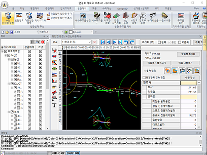 * 또한 선형계획이 완료되면 토공 유동까지 자동 계산되며 평면, 편경사, 종단, 횡단 중 한부분이 수정이 되면, 연계된 다른 도로의 계획까지 자동으로 수정됩 니다.