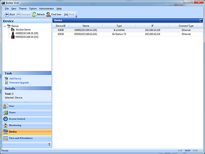 * TCP/IP 네트워크, RS485 등의 다양한 네트워크 인터페이스에 연결된 장치를 추가/관리/제거할 수 있습니다. 또한 서버 매칭 등의 고급 기능을 설정할 수 있습니다.