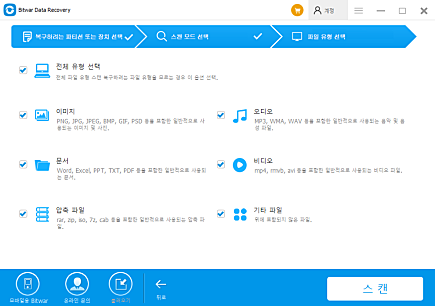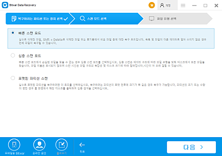 * 표준 모드 및 마법사 모드는 빠른 스캔, 정밀 스캔, 형식 복구 등을 제공합니다.