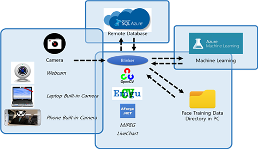 * 프로그램을 처음 시작할 때 뜨는 초기 화면이며 닉네임(ID)과 얼굴을 등록합니다. 여기서 얼굴 사진은 사용자의 눈 깜빡임 인식 정확도를 높이기 위해 사용되며 사용자 맞춤 데이터를 제공하기 위해 Azure DB에 저장할 닉네임을 설정합니다. 이는 프로그램 처음 실행 시 설정하면 다음에는 나타나지 않습니다.