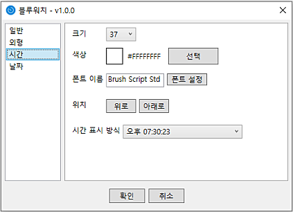 * 시간의 폰트 크기, 색상, 종류, 굵기, 기울기, 위치, 표시 방식 등을 설정할 수 있습니다