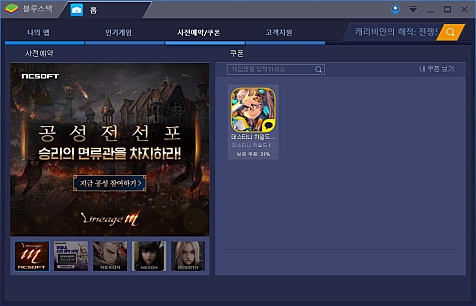 * 블루스택을 통해 PC에서 안드로이드 전용앱들을 보다 쾌적하게 사용할 수 있습니다.