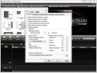 Camtasia Studio의 화면 녹화 옵션을 통하여 전체 화면, 웹캠 비디오, PowerPoint프레젠테이션 등을 쉽게 녹화할 수 있습니다.