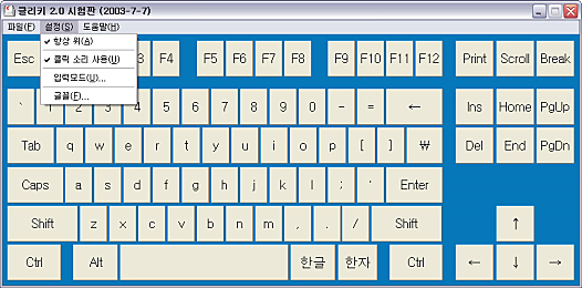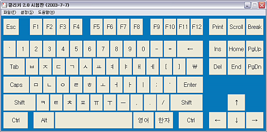 상세정보 가상 키보드 키보드 없이 글자 입력을 할 수 있는 기능이 있습니다. TXT 문서의 창, 인터넷 창 등 다양한 프로그램에서 사용이 가능합니다. 한글 모드, 영문 모드 모두 지원이 됩니다. 사용자가 창의 크기를 직접 조절할 수 있으며 글꼴의 종류 및 크기를 설정할 수 있습니다.