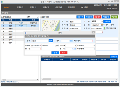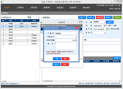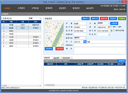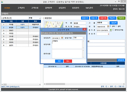 회원정보관리 및 포인트기능과 일정관리를 할 수 있는 고객관리 프로그램입니다.