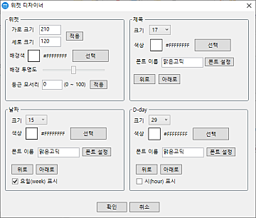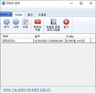 시험일, 기념일 등에 대한 카운트다운, 카운트업 등을 수행하는 디데이(D-day) 위젯 프로그램입니다.
