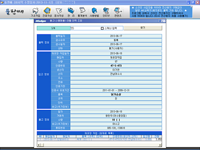 - 입/출고 대장, 재포장 이력, 재고현황, 인증품 취급실적량, 원료 수불대장, 라벨지 이력조회, 리콜체계, 이력관리, 기타 경영관리