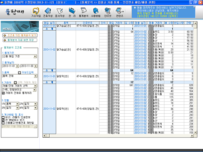 -> 식재료 납품에서 자주 사용하시는 전문 통계 양식 100 여종을 몇번의 클릭만으로 처리됩니다.