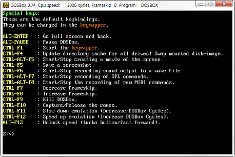 CTRL + F12 : 프레임 속도 조절(DOSBox 사이클을 증가)