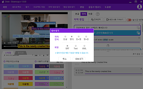 영어자막과 영어한글 동시자막을 만들 수 있습니다.