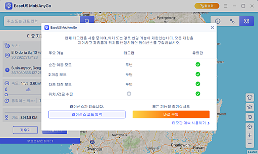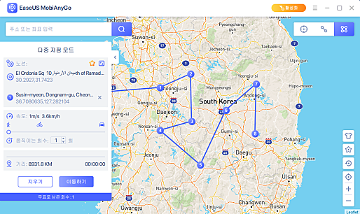 * EaseUS MobiAnyGo를 사용하면 원하는 속도로 한 곳에서 다른 곳으로 이동할 수 있습니다.
