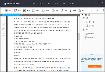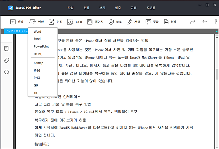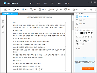 * EaseUS는 사용자가 원하는 대로 PDF의 텍스트, 이미지 및 링크를 추가, 수정 또는 제거합니다. 페이지를 쉽게 삽입, 삭제, 순서 변경, 추출, 잘라내기 또는 회전할 수 있습니다.