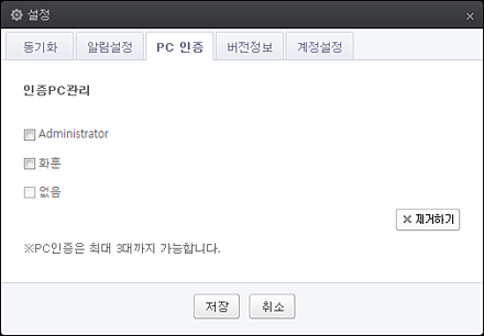 사용자의 PC 인증에 의해서만 사용이 가능 합니다.
