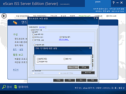 * USB, CD, 웹캠, SD 카드 차단 또는 비밀번호 접속, 자동검사, 등록된 기기만 접속 허용