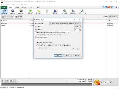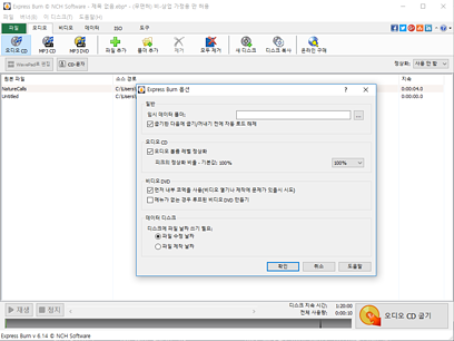 * 오디오 CD를 구울시에, 오디오 볼륨을 정상화하고, 트랙간의 일시 정지를 사용자가 지정할 수 있습니다.