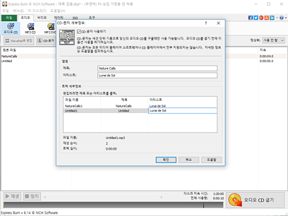 * 오디오 CD는 나중에 트랙을 추가할 수 있게 멀티세션 쓰기를 할 수 있습니다.