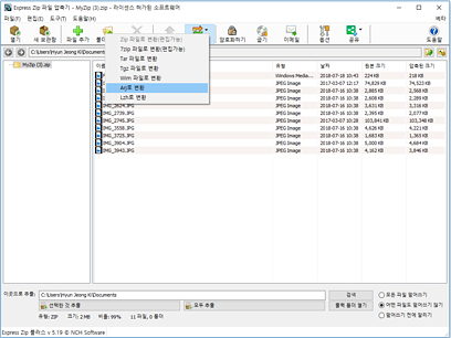 * 보관파일을 다른 형식에서 zip 파일로 변환합니다.