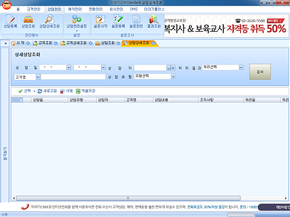 * 상담원별, 날짜별, 고객별 검색등 다양한 검색 제공이 제공됩니다.