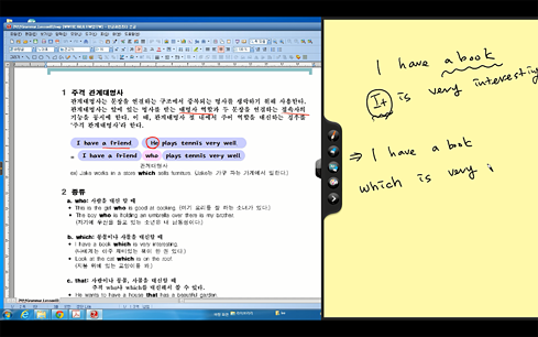 * 마우스와 펜을 오가며 자유롭게 판서할 수 있습니다.