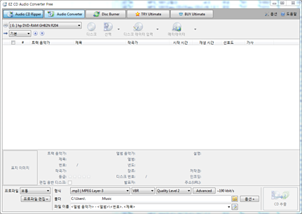 오디오CD에서 음원을 추출하거나 포맷을 변경하고, 음악파일로 오디오CD를 만들 수 있는 프로그램입니다.