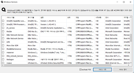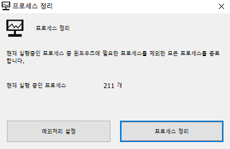 * 필수 프로세스외 실행중인 프로세스를 종료합니다. 메모리 리소스 부족과 속도 저하 문제가 해결됩니다.(프로세스 예외처리 가능)