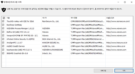 * 속도 저하와 프로그램 충돌을 일으키는 보안 프로그램을 쉽게 삭제할 수 있습니다.(모두 삭제 권장, 필요시 다시 설치됨)