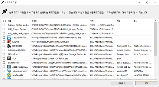 * 컴퓨터가 부팅되면서 자동실행되는 프로그램을 정리 할 수 있는 기능