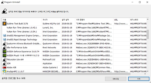 * 컴퓨터에 설치 된 프로그램 목록을 보여주고 쉽게 삭제가 가능합니다.