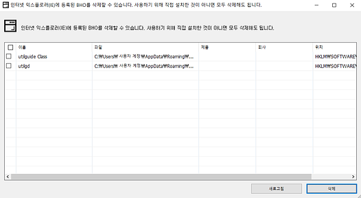 * 실행중인 BHO를 보여주며 선택삭제가 가능합니다.
