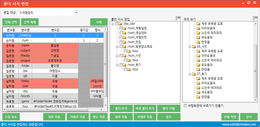 사용자가 폴더 서식에 사용할 변수를 작성 또는 편집할 수 있습니다.