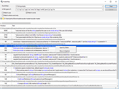 FindInFiles는 컨텍스트 메뉴를 사용하여 파일의 텍스트를 검색하는 프로그램입니다.